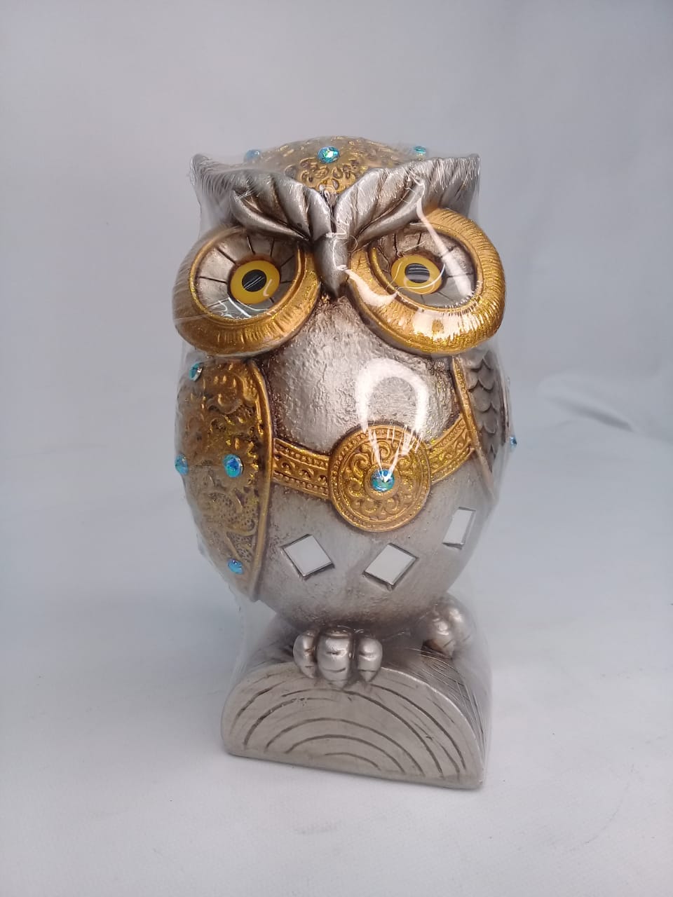 BÚHO DECORADO SOBRE RAMA 18 CM