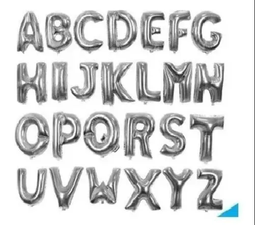 GLOBO LETRA . METALIZADO . PLATA – 14″ – 36 CM. LÍNEA TUKY