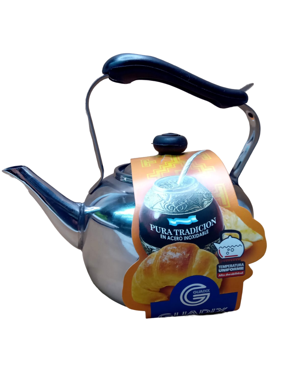 PAVA DE ACERO INOX. CON MANGO DE BAQUELITA PINTADA – 2 LTS. –