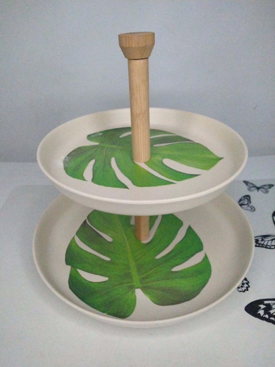 PLATO EXHIBIDOR – 2 PISOS – DE BAMBÚ Y MADERA –